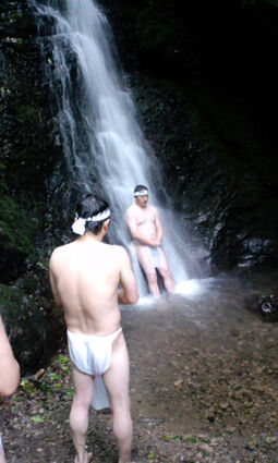 無事滝に到着して、ひんやりした気温の中いざふんどし一丁!