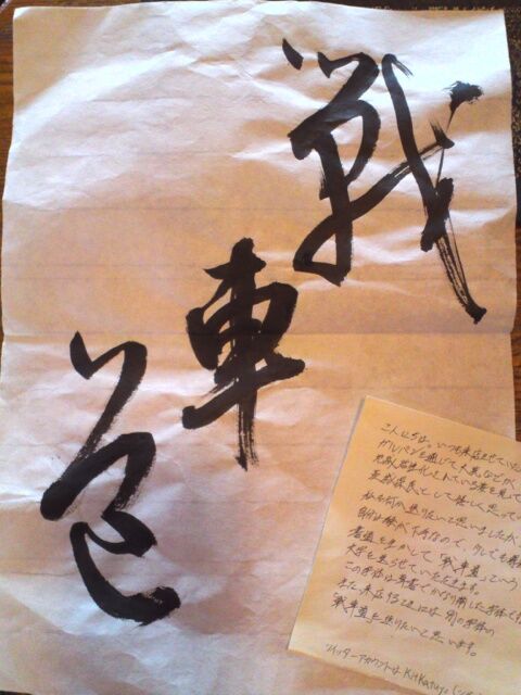 メッセージで「自分は絵が苦手なので、書道でお持ちしました」と・・・