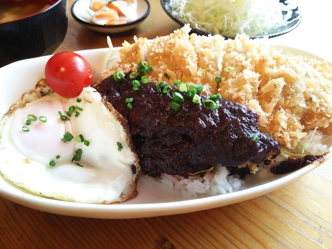 ソースは和風ということで、八丁味噌をベースにしたソースを使っています。中秋の名月ということでもあったので、玉子をのせました♪