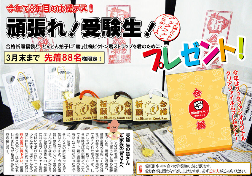 調子はどうですか?順調ですか?クックファンでは、恒例の「受験応援」が今年も始まりました!