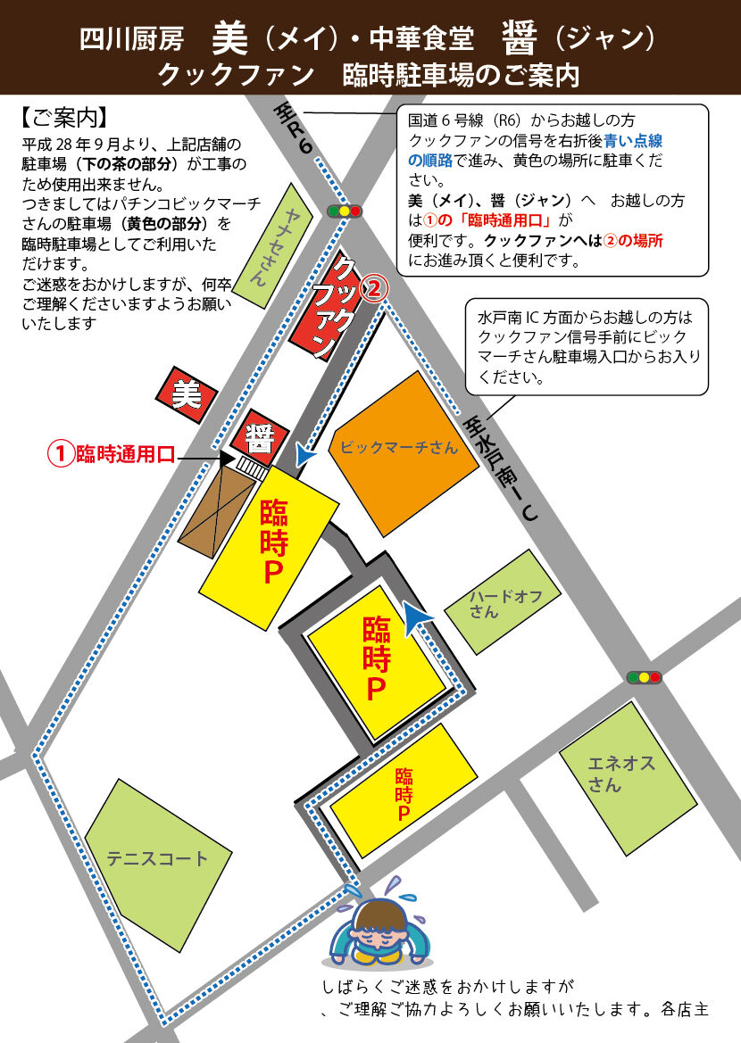 クックファン第2駐車場 ご近所の美(メイ)、醤(ジャン)駐車場変更のお知らせ