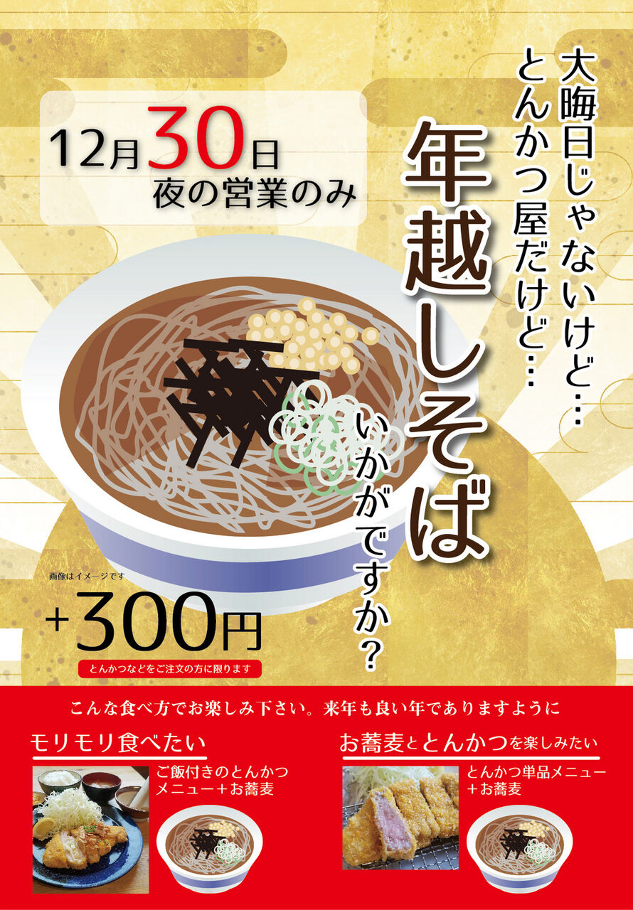 本日(12月30日)夜の営業時、年越しそばやっちゃいます☆