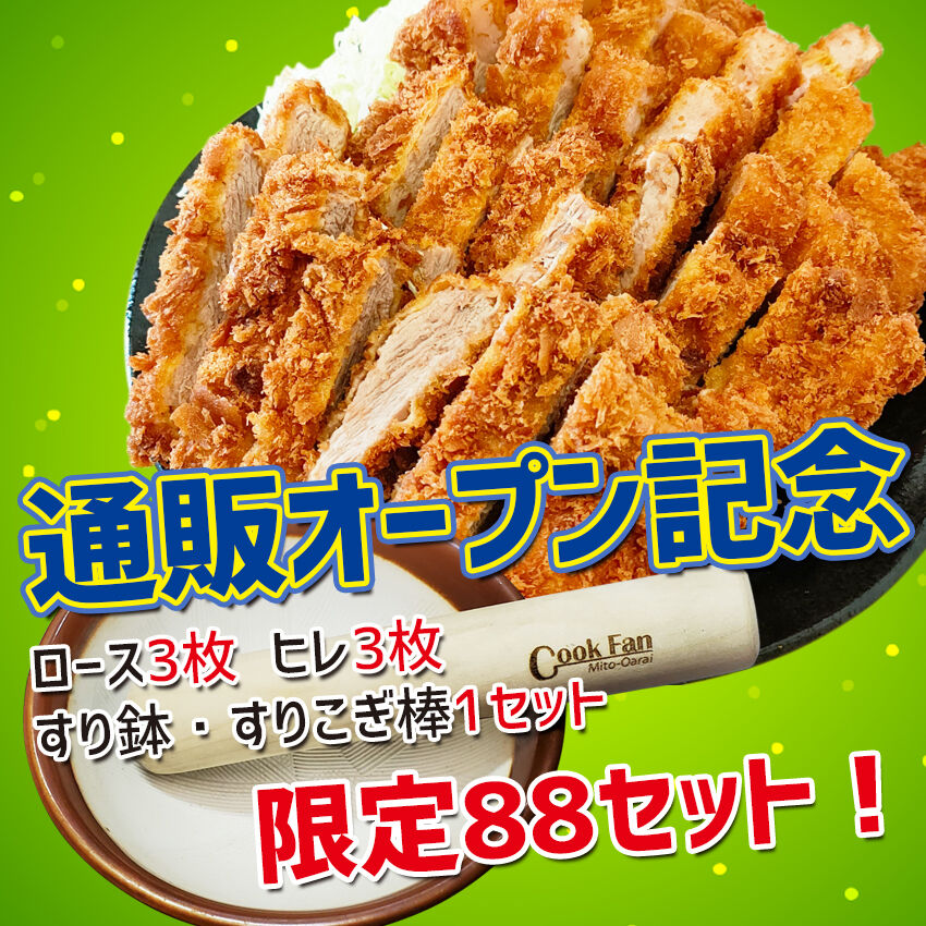 限定88セット!通販オープン記念【ロースかつ3枚 ヒレかつ3枚 すり鉢 オリジナルすりこぎ棒1セット】
