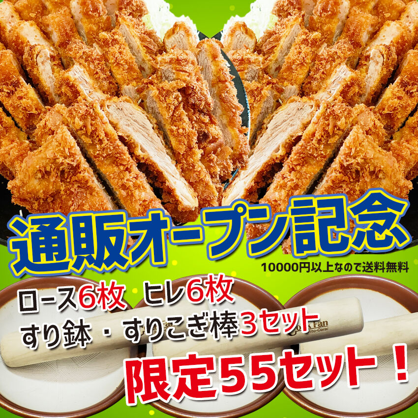 限定55セット!通販オープン記念【ロースかつ6枚 ヒレかつ6枚 すり鉢 オリジナルすりこぎ棒3セット】