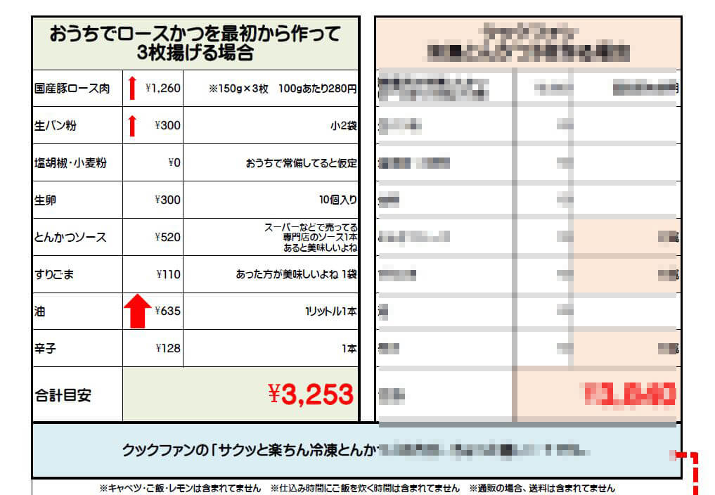 クックファンのサクッと楽ちん冷凍とんかつ(ロース)3枚との比較です。